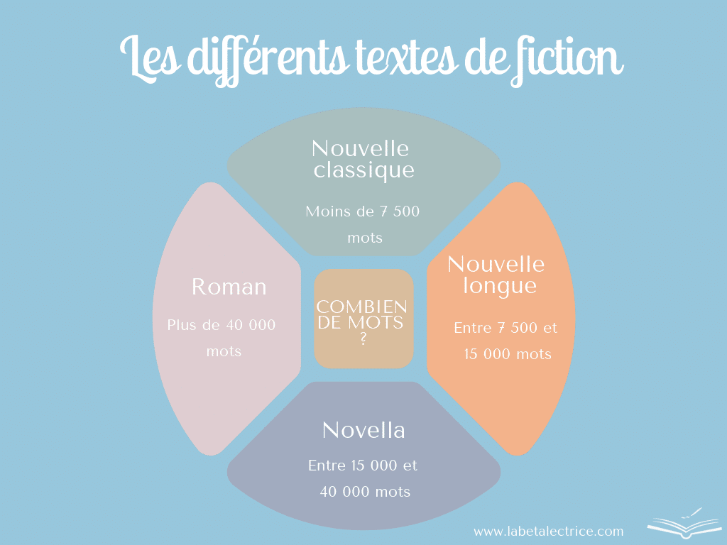Une novella désigne donc un texte dont la longueur est comprise entre 15 000 et 40 000 mots. Elle contient une intrigue solide et développée mais peu d’intrigues secondaires. Elle peut être structurée en plusieurs parties, ou pas.